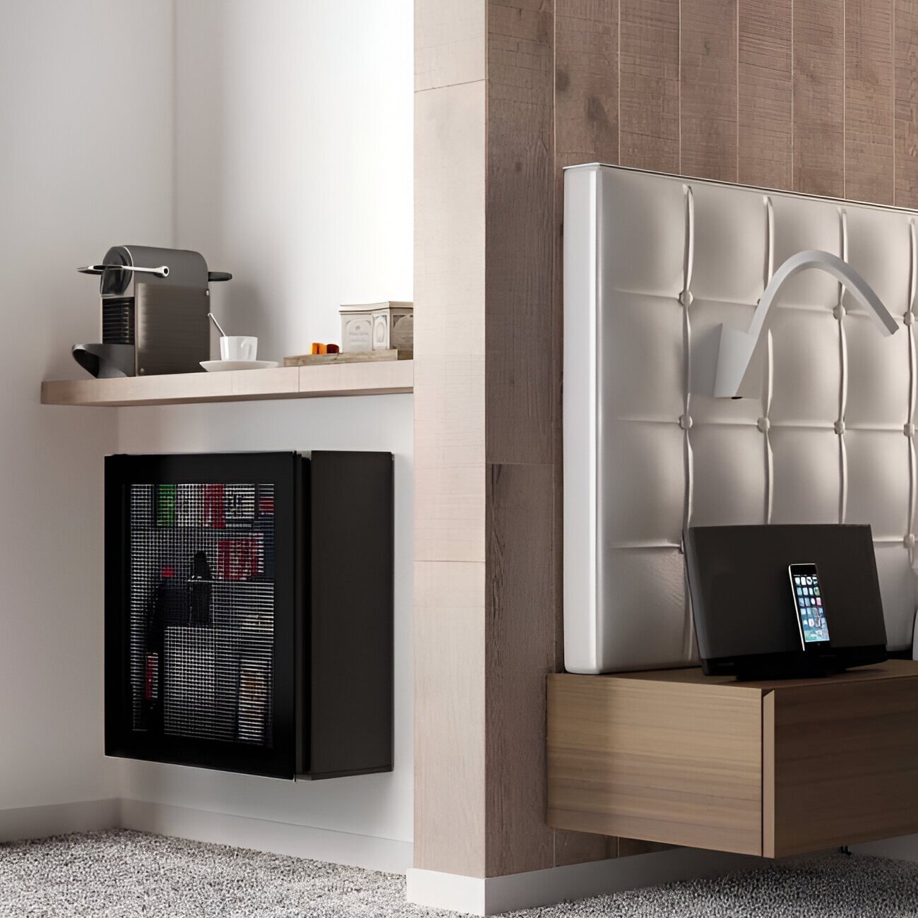 Découvrez le INDEL B FlyingBar, le minibar mural le plus fin au monde, alliant design italien et technologie intelligente. Avec sa porte vitrée et son système de refroidissement économe en énergie (Classe A+), il s'adapte à tous les espaces et offre une accessibilité optimale pour vos invités.