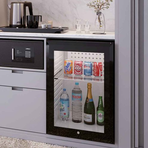 Minibar à Compression K20 Ecosmart avec Porte Vitrée Sombre – Indel B