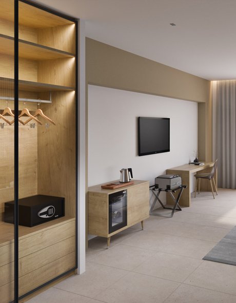 Minibar, porte-bagages, coffre-fort : l’alliance parfaite du confort et de l’élégance.