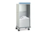 Container mobile en aluminium avec tablettes rabattables, conçu pour le transport du linge propre et sale.