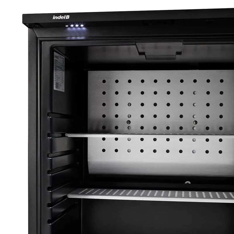 - Intérieur noir avec étagère en aluminium : Finition haut de gamme et durable.