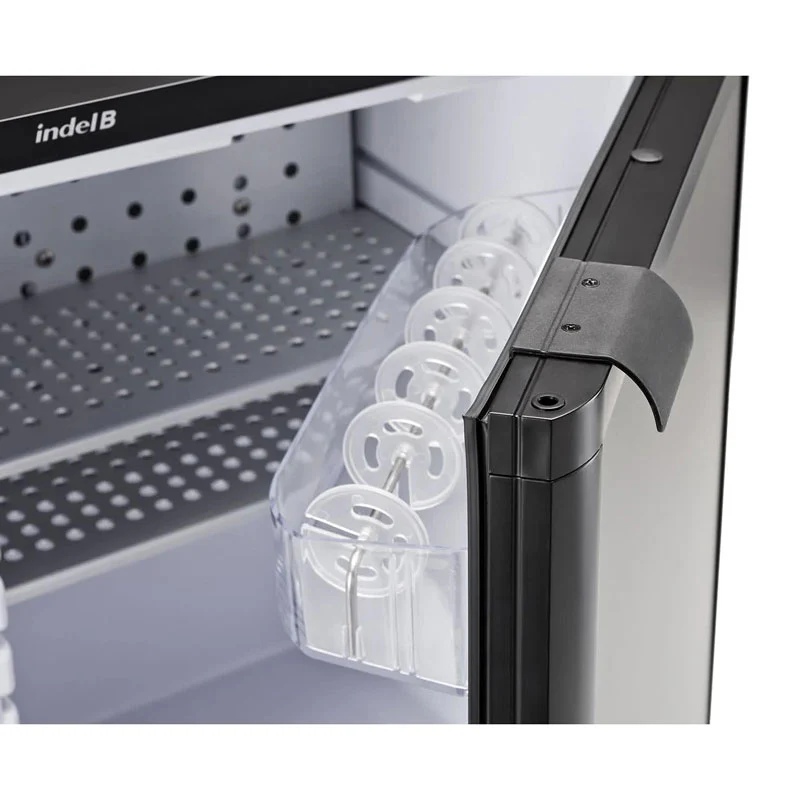 Indel B a été le pionnier en intégrant dans ses minibars à compression un système d’accumulation de froid innovant, qui utilise un compresseur de nouvelle génération associé à une réserve de froid gérée par un minuteur électronique. Ce système permet de réduire les consommations énergétiques, avec un minimum de 6 heures de fonctionnement du compresseur sur une période de 24 heures.
