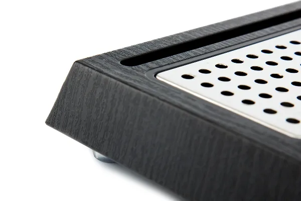 Doté d’un bac d’égouttage intégré pour les sachets de thé et les cuillères usagés, le plateau STAY garantit propreté et facilité d’utilisation. Le système antivol pour câble offre une sécurité supplémentaire, tandis que sa conception compacte et résistante à la chaleur en fait un choix durable et fonctionnel.