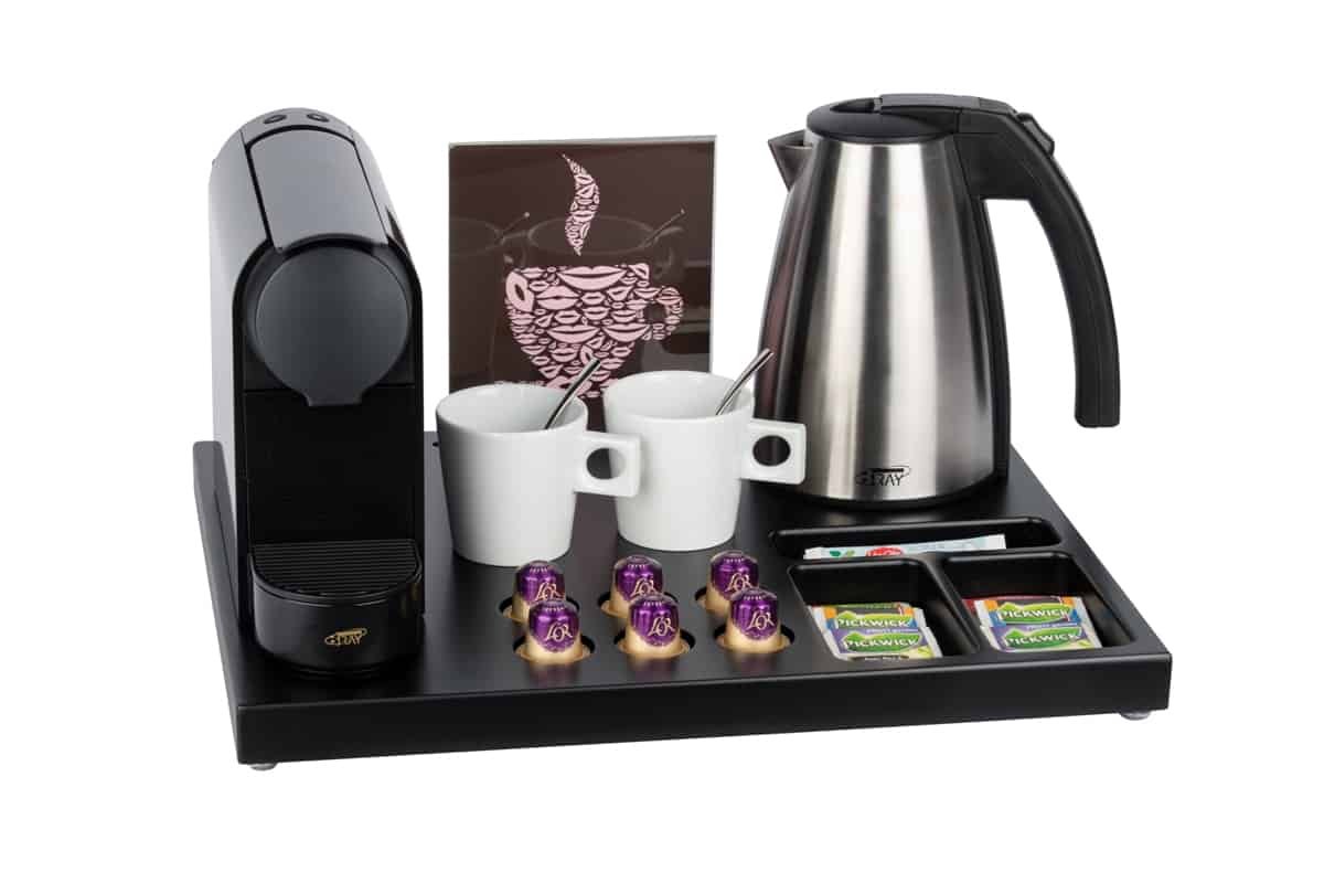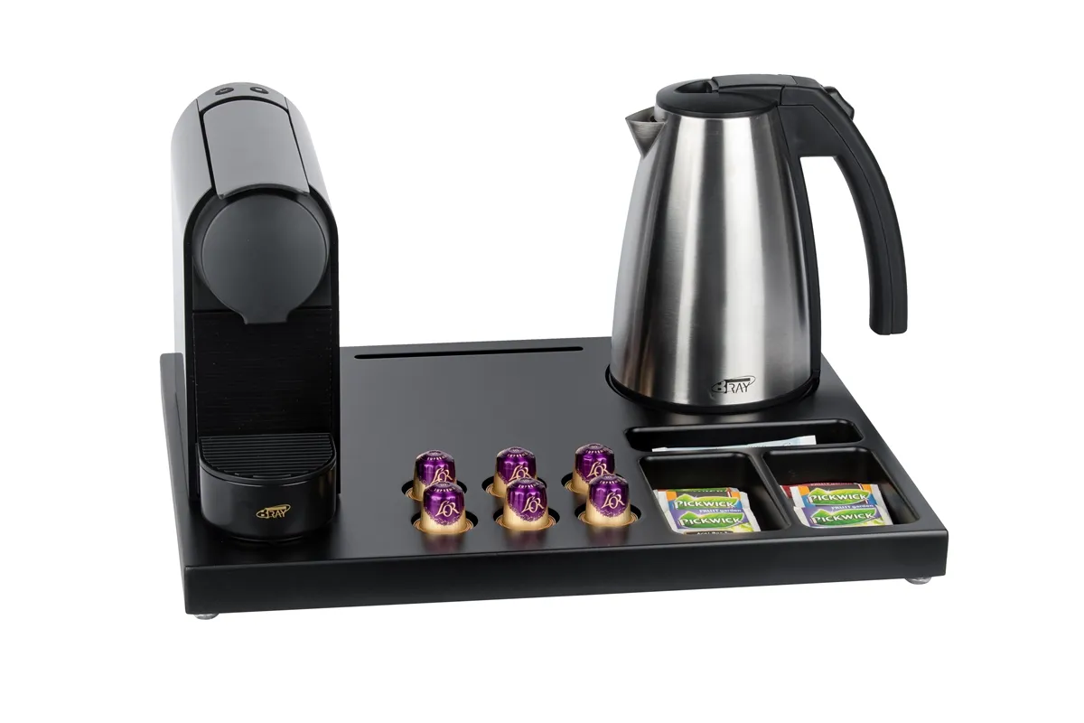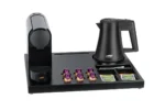 Doté d’une option antivol pour sécuriser le câble de la bouilloire ou de la cafetière, le plateau SUPREME est idéal pour les hôtels souhaitant allier praticité et esthétique. Compatible avec les bouilloires B-TRAY, une cafetière ou encore un porte-brochures A5, il peut être personnalisé selon vos besoins.