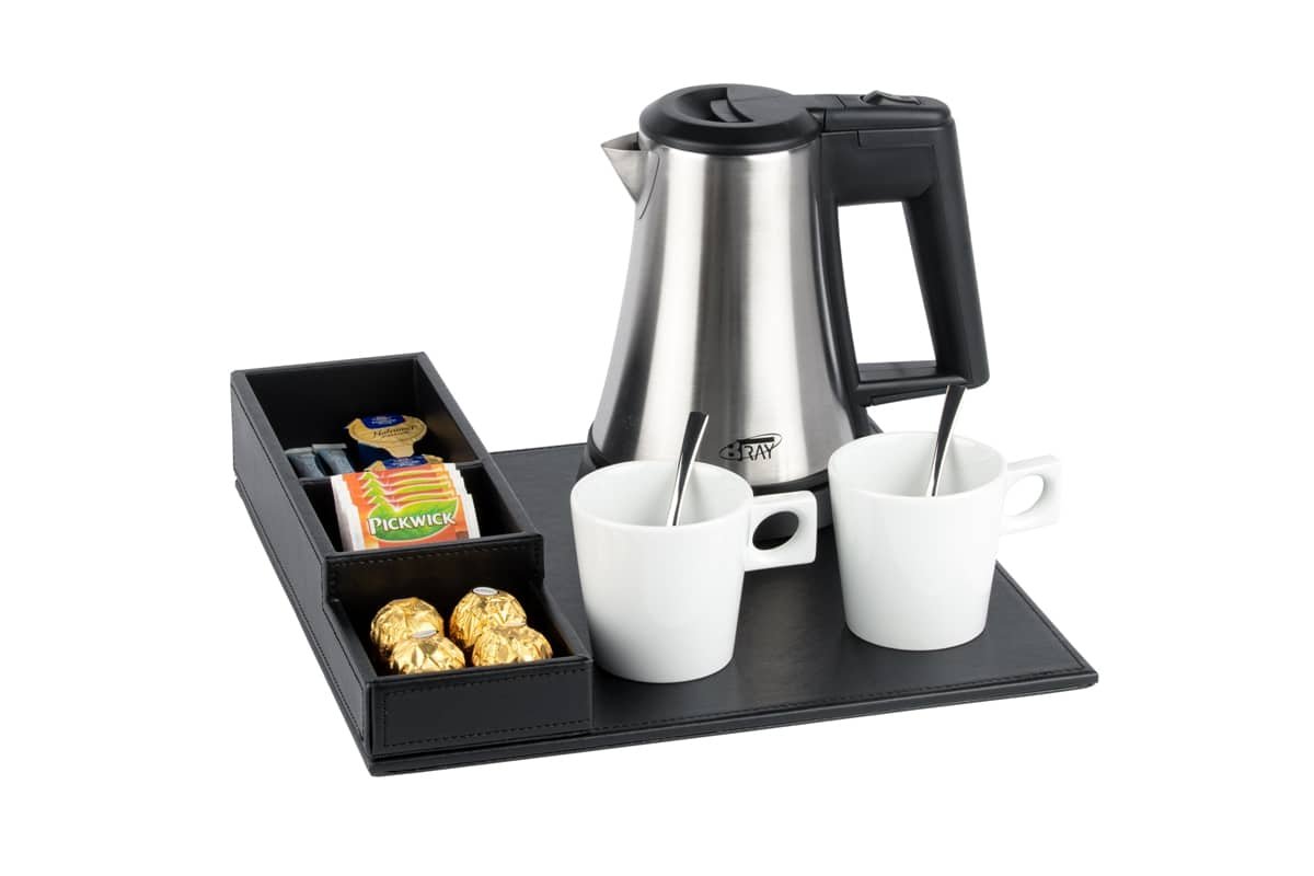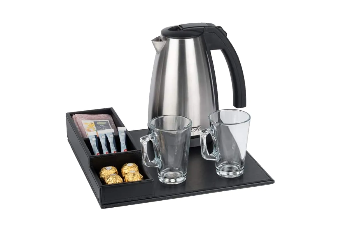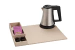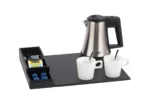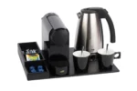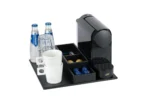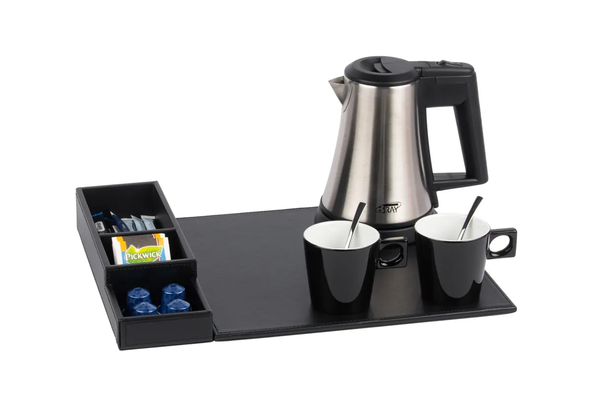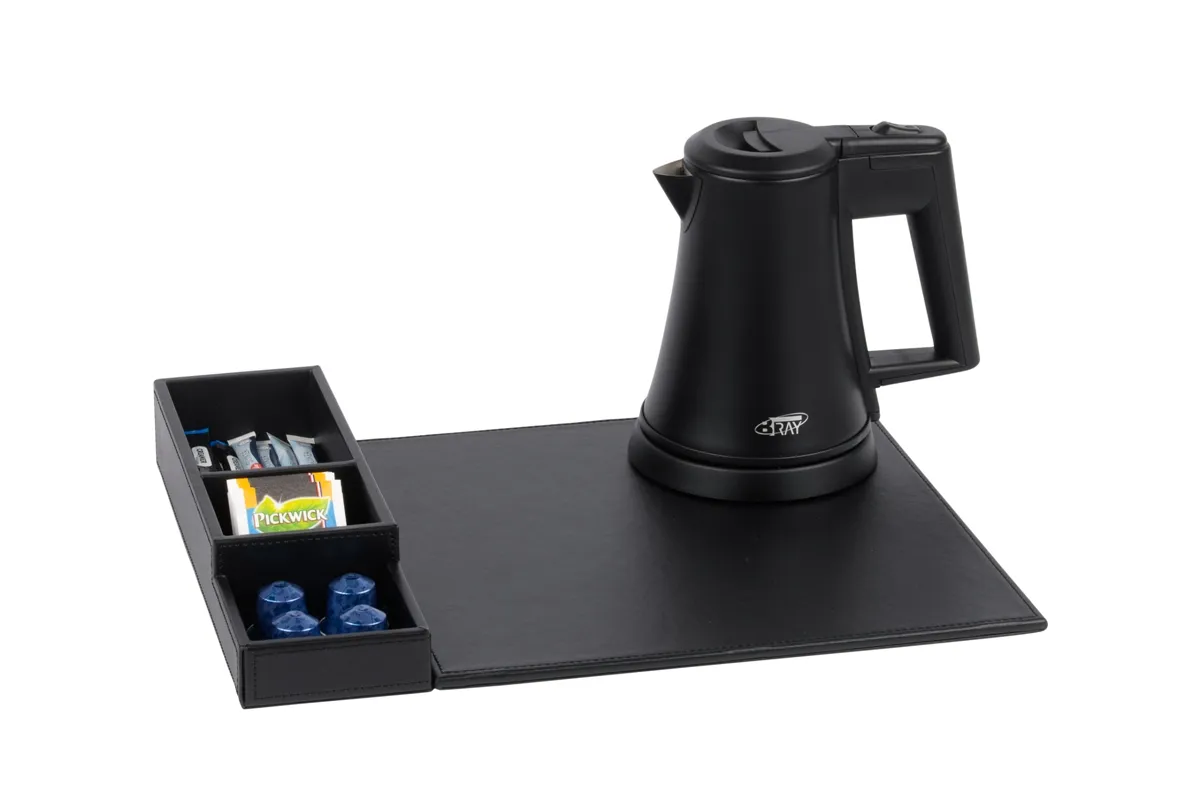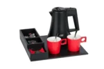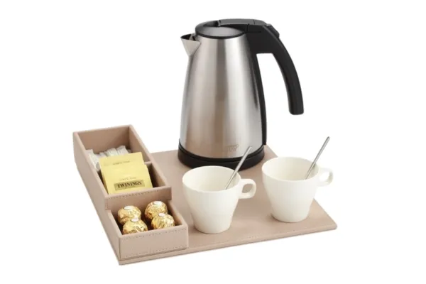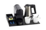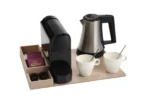 Polyvalent et compact, ce plateau de courtoisie peut être complété par une bouilloire, une machine à café et des tasses à café (disponibles en option). Il s’intègre parfaitement dans les chambres d’hôtel tout en offrant à vos clients une expérience raffinée et pratique.