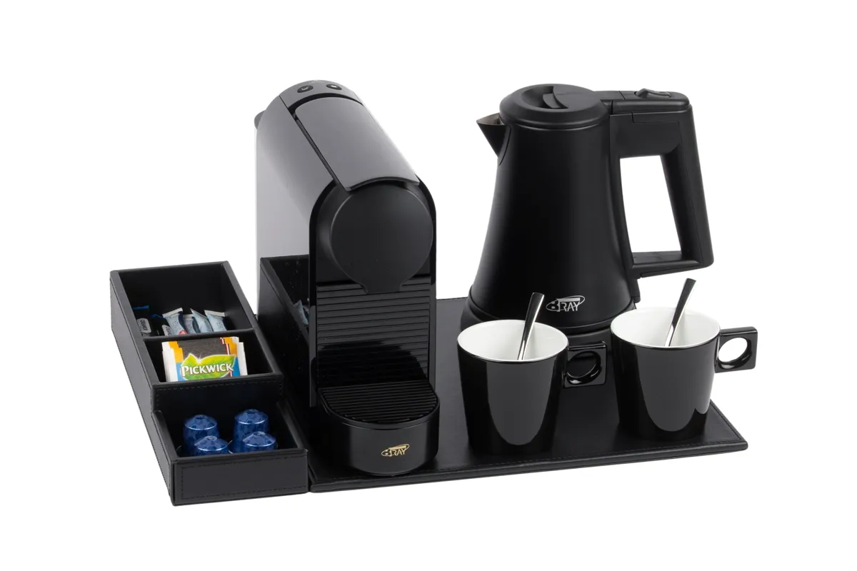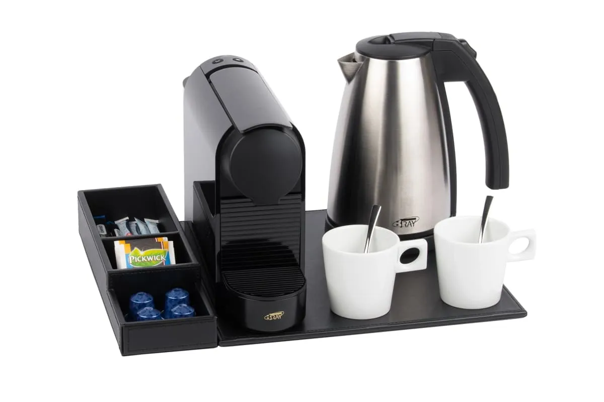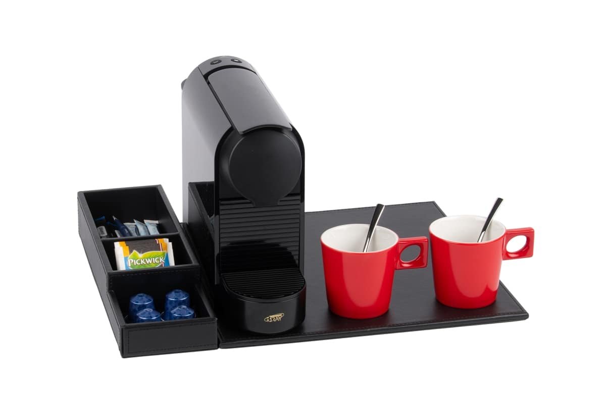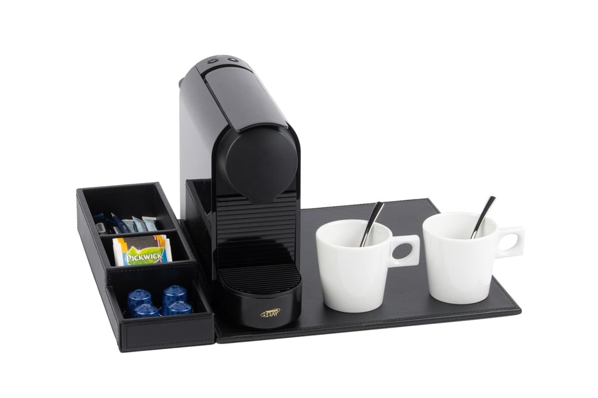 Polyvalent et compact, ce plateau de courtoisie peut être complété par une bouilloire, une machine à café et des tasses à café (disponibles en option). Il s’intègre parfaitement dans les chambres d’hôtel tout en offrant à vos clients une expérience raffinée et pratique.