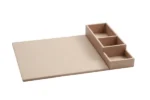 Découvrez le plateau SNAP, une solution de courtoisie haut de gamme alliant design, fonctionnalité et modularité. Fabriqué en similicuir de haute qualité, ce plateau est disponible en deux couleurs élégantes : beige chaud et noir.