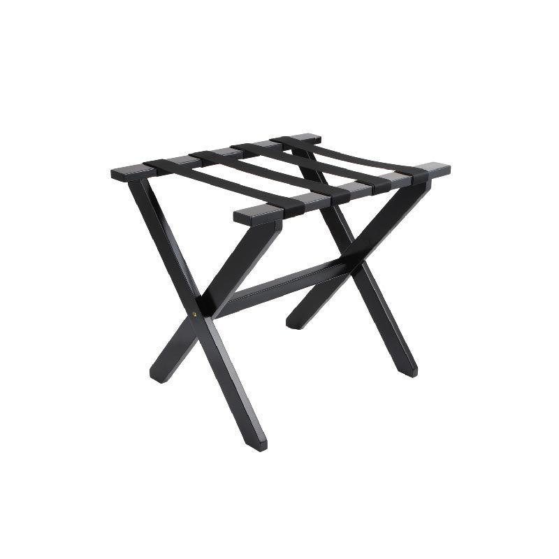 Le porte-bagages PREMIUM Noir est un accessoire conçu pour répondre aux exigences des hôtels haut de gamme. Fabriqué en bois massif de couleur foncée et équipé de sangles en nylon polyester résistant, il allie robustesse, design élégant et fonctionnalité.