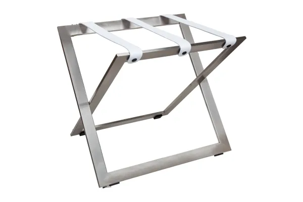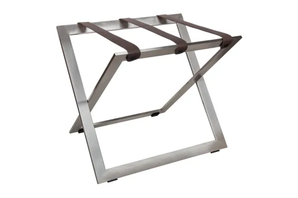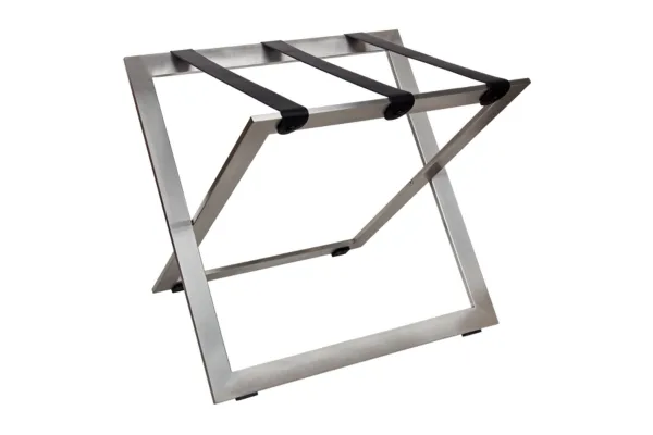 Le porte-bagages STAND-STEEL en acier inoxydable est une solution robuste et élégante pour vos chambres d’hôtel.
