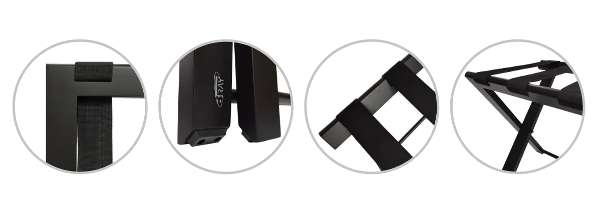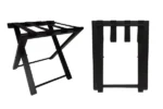 Fabriqué en hêtre massif de haute qualité, il est conçu pour être durable et stable tout en offrant un design compact et élégant. Très plat lorsqu’il est replié, avec une profondeur de seulement 4,3 cm, il se range facilement dans une penderie ou un placard, optimisant l’espace disponible. Équipé de 4 sangles en nylon noir ultra-résistantes, il garantit un maintien sécurisé pour tous types de bagages. Ce modèle économique répond parfaitement aux besoins des hôtels recherchant des solutions de qualité à moindre coût.
