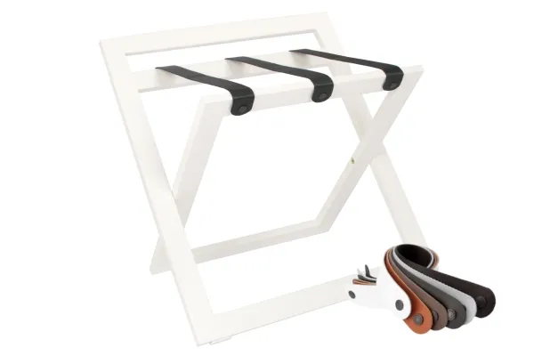 Compact et pliable, ce porte-valises est conçu pour optimiser l’espace tout en offrant une stabilité exceptionnelle. Doté de 3 sangles échangeables en tissu ou en cuir, il s’adapte à vos préférences et styles de décoration. Disponible en plusieurs coloris, il répond à toutes les exigences des établissements modernes.